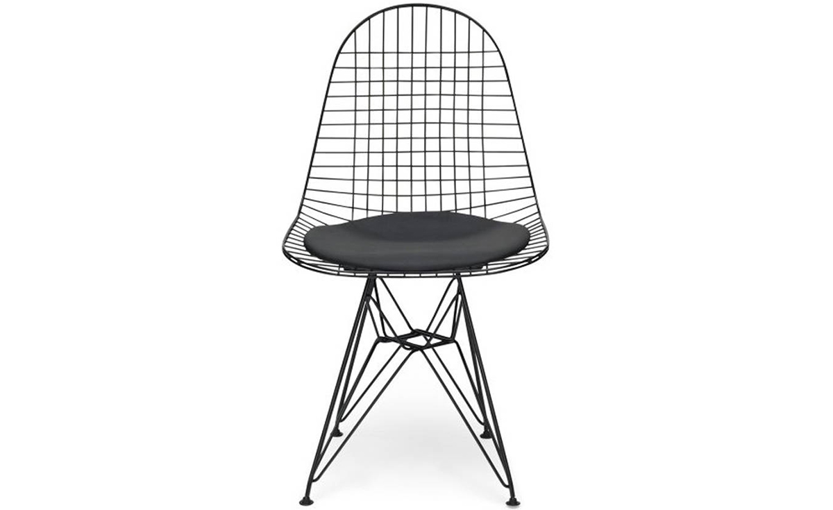DKR 單椅結合了 Wire Chair 的網狀金屬椅座搭配鐵塔椅腳。