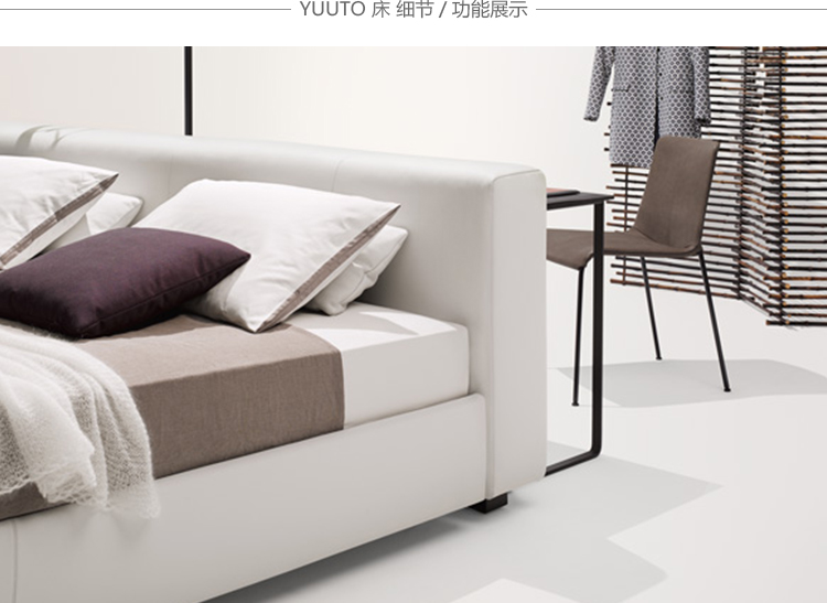 好的设计源于好的思路,Yuuto就是这样。这个软垫穿展示你睡觉的地方,自由的在一个房间里,它容纳了现代生活,为我们的衣橱、浴室、全景、为我们的私人生活的意思提供灵活的各种可能。一张软垫穿,宽敞的设计用料讲究。感觉和纯粹的美丽。