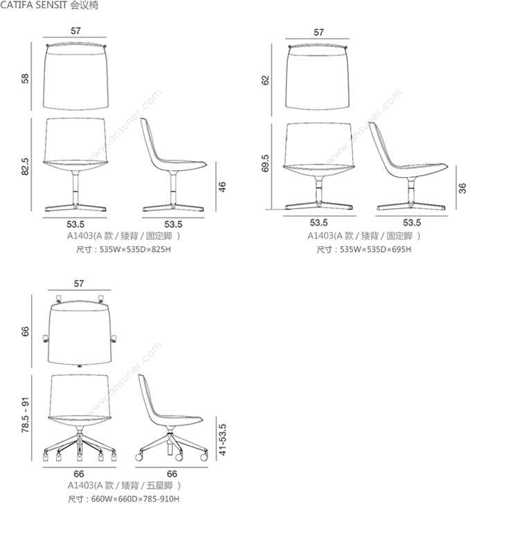 Catifa Sensit 会议椅 系列尺寸/示意图