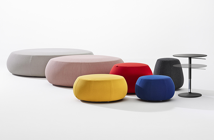Pix Pouf系列家庭垫脚软凳由日本设计师Ichiro Iwasaki、设计的。形象的轮廓、柔和的色彩运用,饱满的外观,防霉实木内框架或玻璃钢内胆、高密度海绵、进口布艺或皮革(颜色可选)。可适合于不同大小的空间,如会议室、 会议活动的多功能厅,亦或是教室和放松的休闲区,还有家庭使用。这系列有四种尺寸大小 (67,87,137 和 177 厘米直径) 。无论室内外都非常合适,让劳累一天的双脚得到无限的放松。