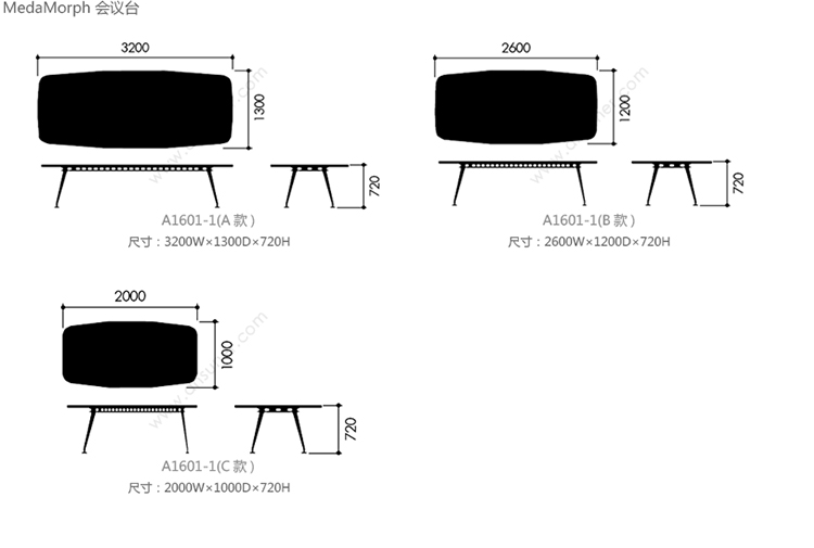 MedaMorph 会议台 系列尺寸/示意图