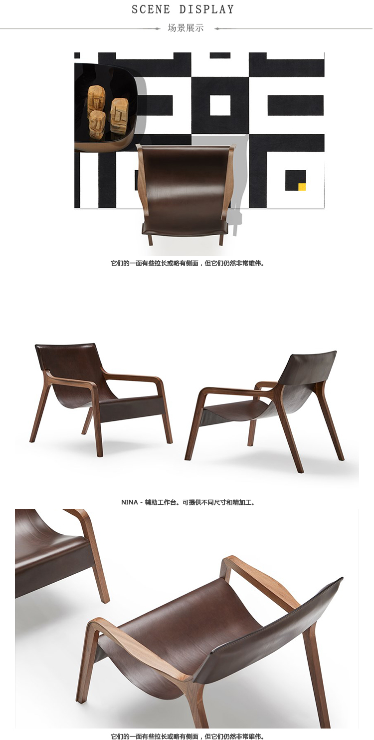 手工缝制的天然皮革扶手椅,坚固的美国胡桃木扶手,非常适合生活或休息区的装备,它是一个可拆卸的部分,不支持紧固件。