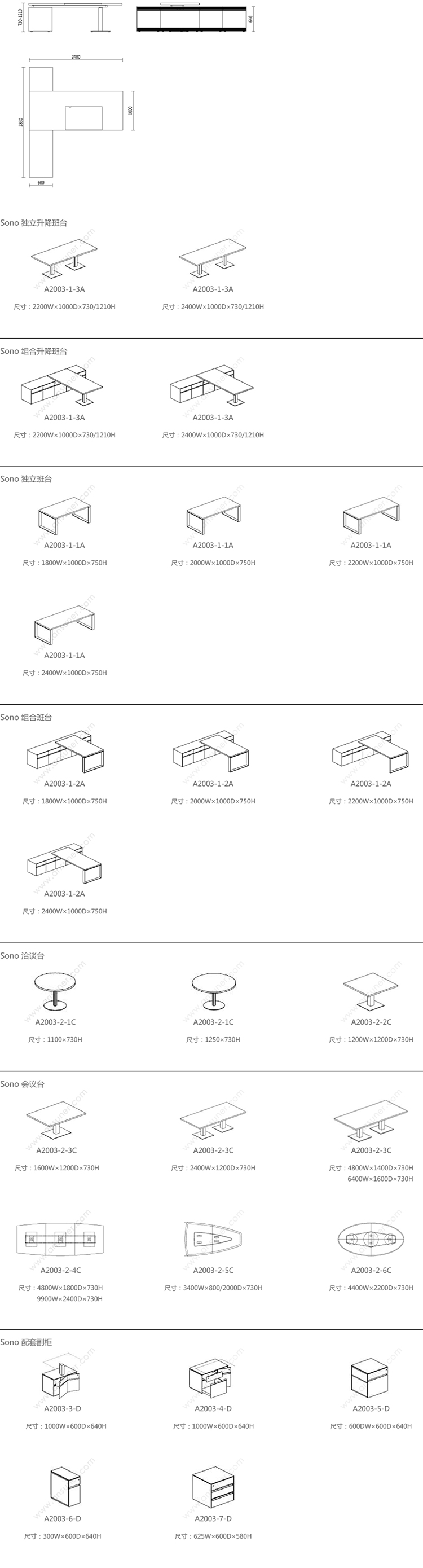 办公台|升降台|办公家具|设计师家具|Sono系列升降班台