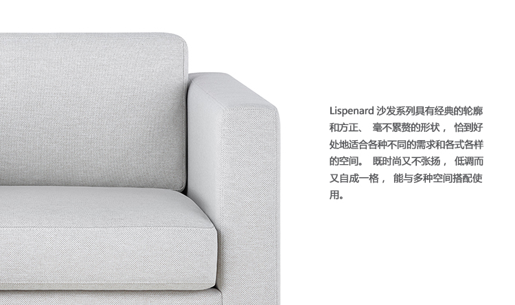 Lispenard沙发系列具有经典的轮廓和方正、毫不累赘的形状,恰到好处地适合各种不同的需求和各式各样的空间。既时尚又不张扬,低调而又自成一格,能与多种空间搭配使用。它还能提供良好的支撑——带角度的靠背提供了恰到好处的支撑点。沙发给人的感觉并不臃肿,而是通过适度的比例来实现舒适型休闲座椅带给您的那种豪华的柔软感。