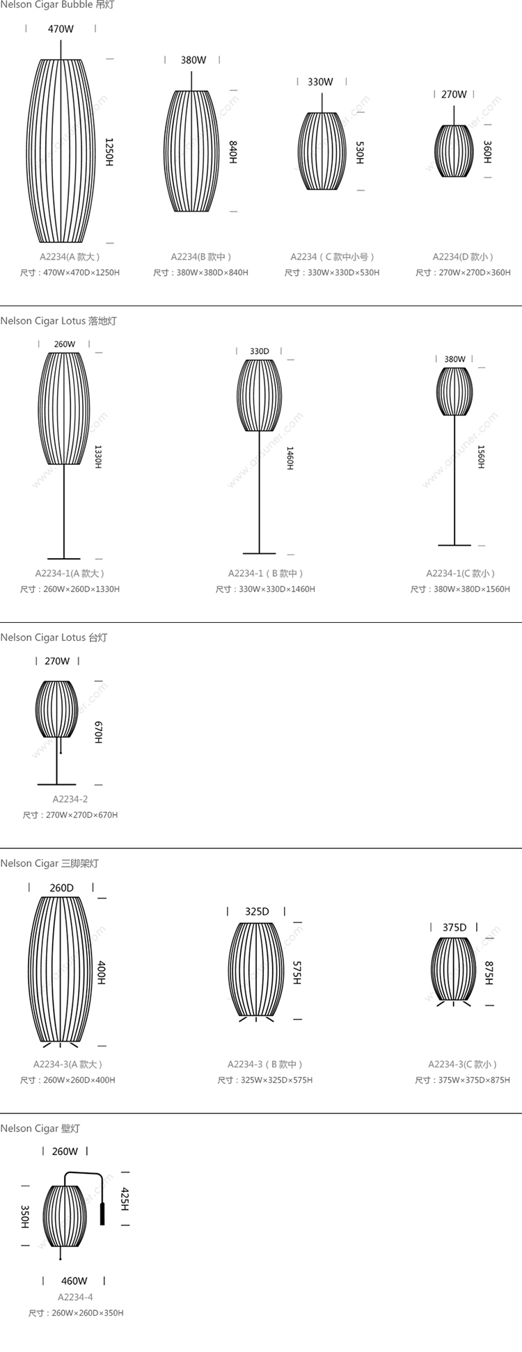 Nelson Cigar Bubble 系列尺寸/示意图