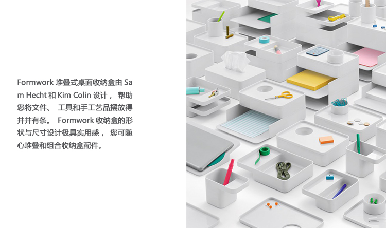 Sam Hecht和Kim Colin的实用性纸巾盒设计确保Formwork堆叠式桌面收纳盒符合现代办公桌的所有需求,他们预计:“该设计将不仅适用于办公室,厨房、工作间及浴室同样适用。”