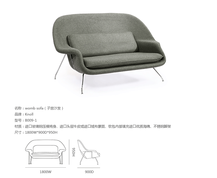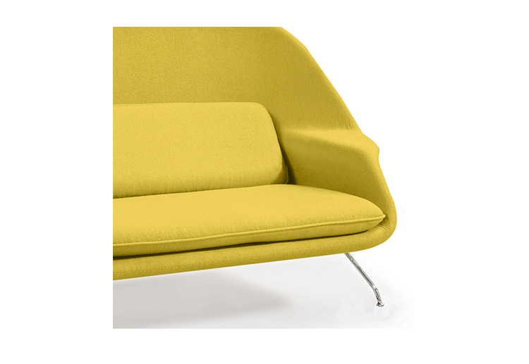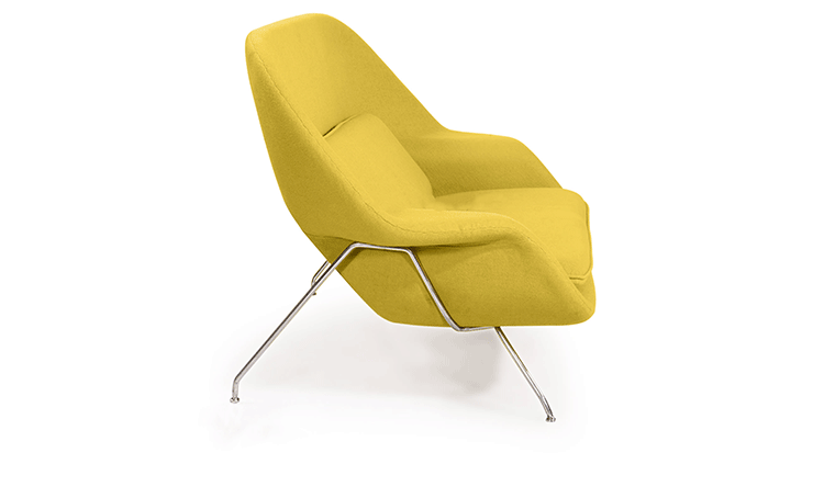 Womb Chair 的基本构造是由抛光镀铬或雾面钢管底座,以一体成型的泡棉包覆框架所组成。 Eero Saarinen 设计这张椅子挑战了一般世俗的规则,打破窠臼,树立了新的现代设计和舒适的标准,充分显示他的高超才华。