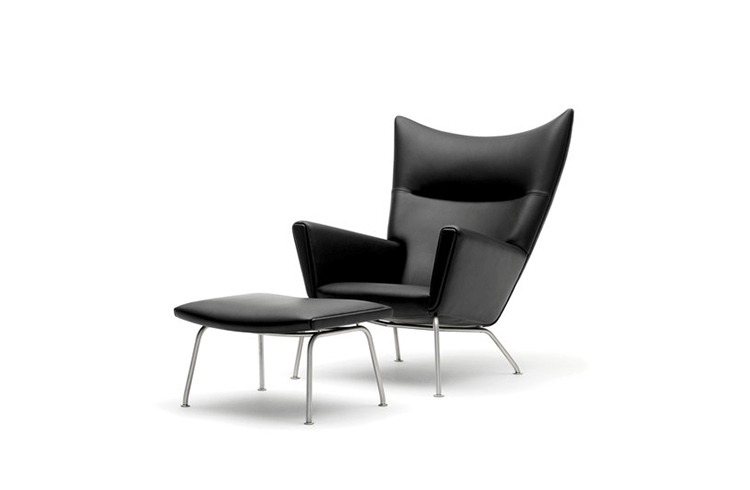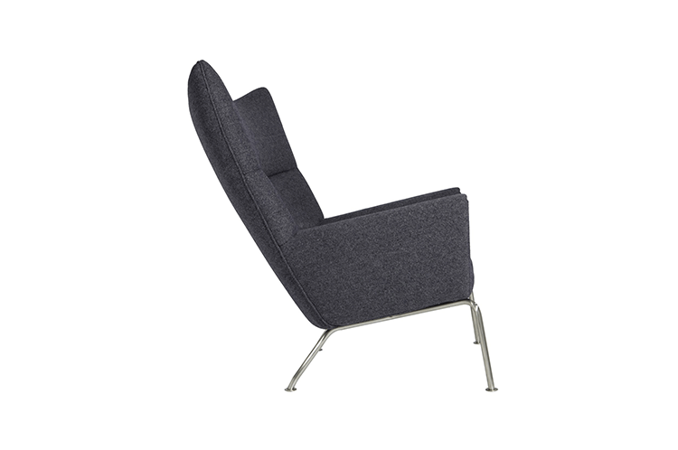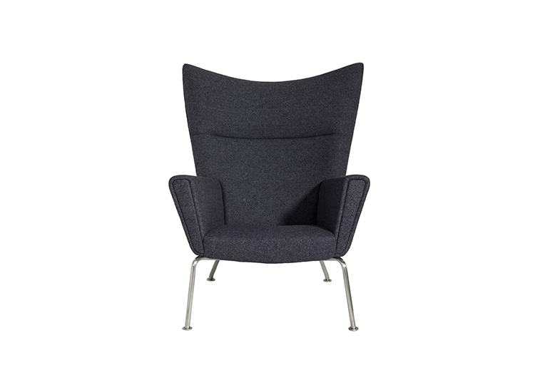 Wing Chair 典型的 Hans J. Wegner 設計,雕塑般的立體線條,讓這張椅子像藝術品般的獨佔一方。寧靜、祥和、平衡的鮮明的個性,來自椅背的弧度、轉角的收邊、肩線的溝槽和襯墊扶手。