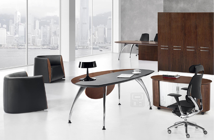 ※ 上图为大班台不同角度的展示,设计精巧的结构,奠下了多样变化的基础。能以不同的色彩和形式来组合出不同的风格,真可谓随心所欲。较深的主色配以椭圆独到的设计造型,缔造冷静、果断的现代时尚的办公气息。