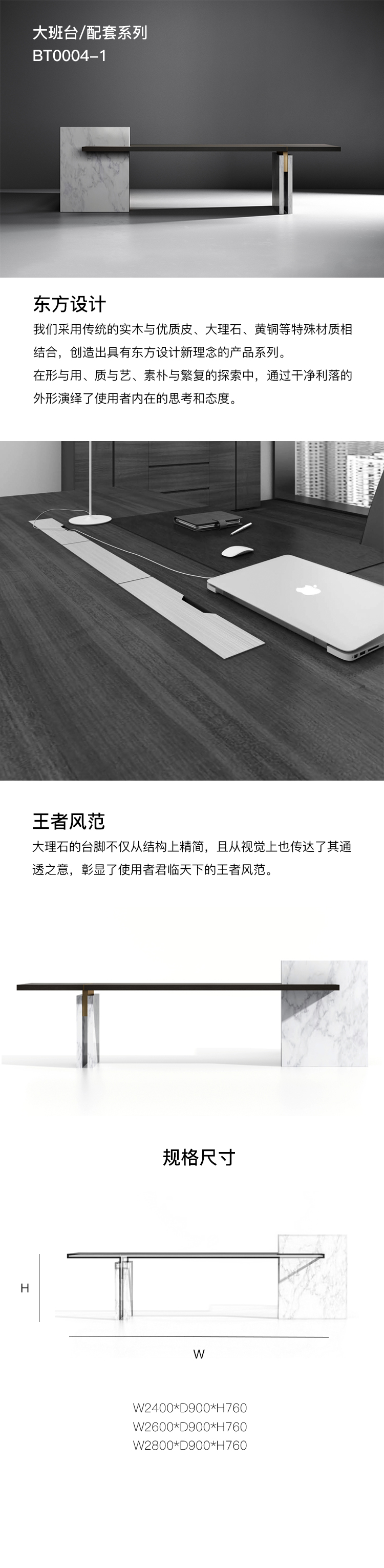 我们采用传统的实木与优质皮、大理石、黄铜等特殊材质相 结合,创造出具有东方设计新理念的产品系列。 在形与用、质与艺、素朴与繁复的探索中,通过干净利落的 外形演绎了使用者内在的思考和态度。