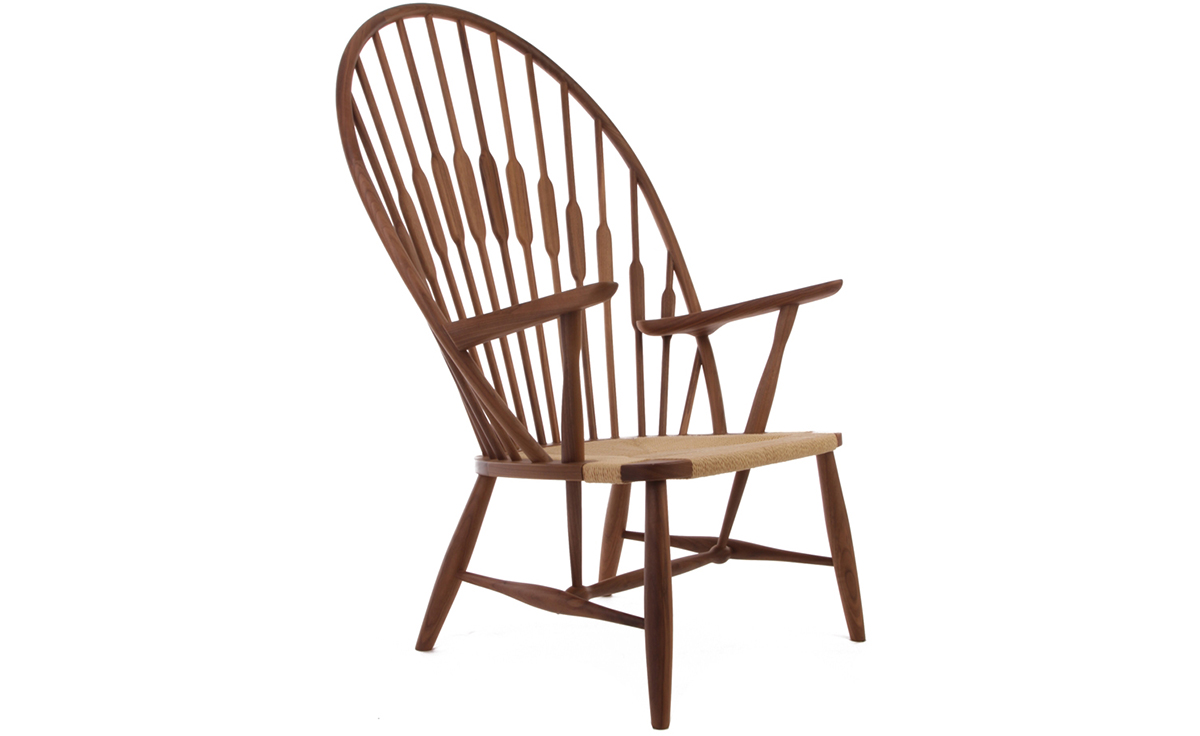 Hans Wegner 的孔雀椅,The Peacock Chair。Hans Wegner 1947年设计(虽然看上去很后现代主义),当时他到哥本哈根不久,离 Johannes Hansen 更近,激发了他的创新。Hans Wegner 善于继承传统,这种继承也不是挖古坟式的,而是很自然,没有压力,获取优点为我所用。孔雀椅起源于温莎椅子(Windsor chair),一种细骨靠背椅,18世纪流行于英美,温莎椅17世纪出现在英国,1726年由宾夕法尼亚的州长 Patrick Gordon 介绍进入美国。