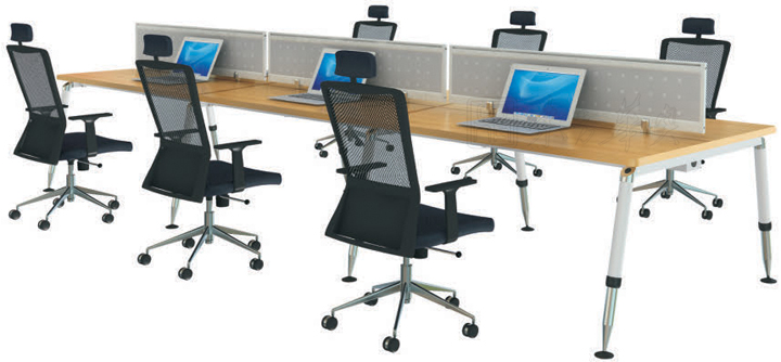 ※  上图为类似款多人位办公桌,以简洁、大方为基调,与时尚元素的整体配合,显示了此系列特有的品味。底脚的稳重、构架的端庄,显示出它的与众不同。