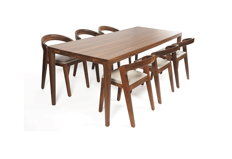 Elegant massive wooden table with an unique contemporary design,rounded edges at the table top and refined table legs.