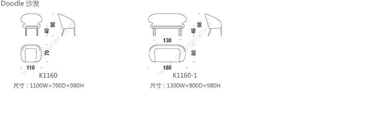 Doodle 沙发 系列尺寸/示意图