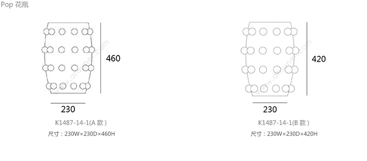 Pop 花瓶 系列尺寸/示意图