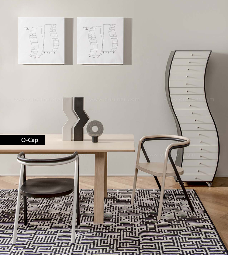 就像拥抱Chair 2的结构一样,它重新审视了经典线性的形式,将珍贵的木材与涂有铁的管子组合成不透明的环氧树脂粉末。 因此,桦木胶合板中的座椅由双管状结构支撑,该双管结构在后部动态地剪接在腿上:前部由实心灰木制成,后部由金属制成。