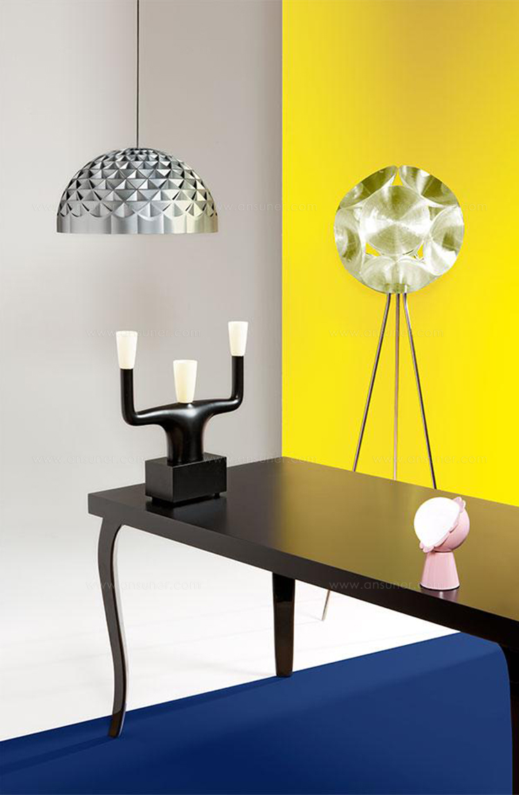 一个具有三个手臂的拟人化结构的灯,让人想起一个古老的烛台。 Andrea Branzi推翻了在同一主题,技术和装饰中解释的收藏概念,在几个要素中有所下降:他的Qeeboo的对象采取不同的方向,既指他们的身份和建设性的技术,旋转或注射,放在一起创造一个生动的场景。