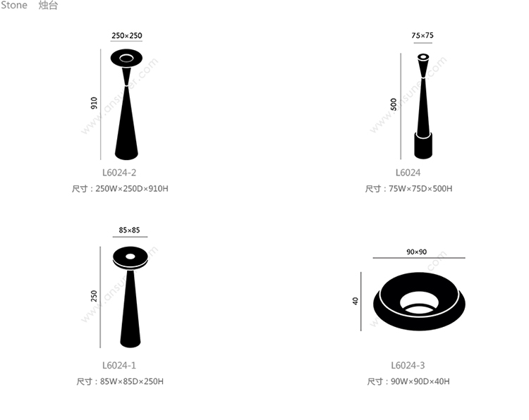 Stone 烛台 系列尺寸/示意图