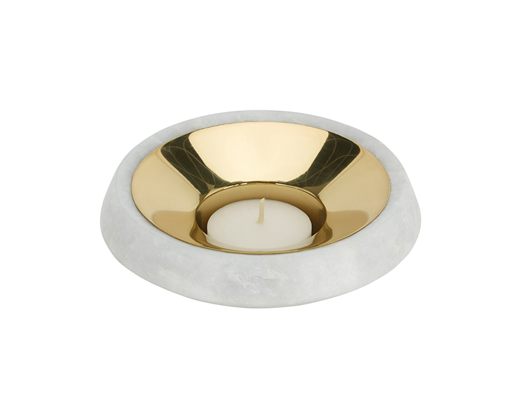 一个优雅的石茶灯座黄铜,包含一个黄铜插入物,反射蜡烛的光,放大令人愉快的,温暖的辉光。