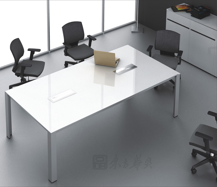 Meeting会议桌依然保持着Rising的简约风格。桌面同样采用镜面高光UV漆或松木纹饰面和细薄的金属封边,桌脚设计为“L”形和“T”形的铝合金柱脚,简洁明快、轻盈大方,让整个会议空间豁然开朗。