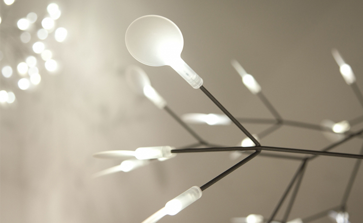 "Decorative LED lamp from Moooi inspired by the Heracleum Plant.The Heracleuom Endless pendant light is a perpetual blossom of new branches that can be added to by the meter. The possibilities are almost limitless by combining straight lines, angles and corners.'Leaves' splay out from 'stems' creating a very technical but natural structure. This pendant light design is created by using the technique of coating conductive layers which would not be possible with normal wires.The Heracleum 'leaves' are not frozen in one position. They can be freely re-positioned by rotating them around their stem. Heracleum includes a new LED which is much more efficient while providing unique and sparkling illumination.Metal wire frame available in a copper or nickel finish (see images) , polycarbonate lenses, steel canopy. Complete with 4m translucent cables.Dimmable with mains voltage dimmer (dimmer for incandescent, halogen). Please make sure to use a dimmer rated for a low power luminaire.Heracleum now includes a new LED that allows endless technical possibilities, making this new version much more efficient while providing unique and sparkling illumination.Available as 116cm sections with 2 types of connector, either 90 or 135 degrees or with end cover set. 2 suspension wires for each section. Canopy - 1 per section in matching finish, copper or nickel."