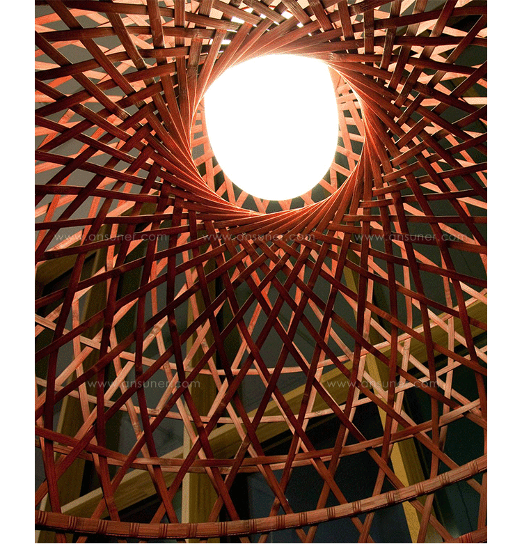 "Once upon a time an asian emperor received as a gift a nightingale. The charming bird sang so beautifully that the emperor always wanted it by his side. He placed the nightingale a majestic hand woven bamboo cage in the imperial chambers and listened, enchanted, to the magic sound" Material: Bamboo rattan cage, aluminum frame and glass diffuser Additional: Each cage is woven by hand And therefore has a unique character.