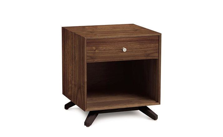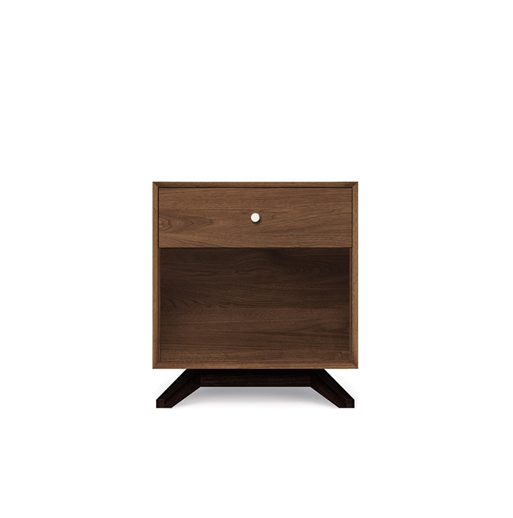 astrid 1-drawer nightstand(阿斯特丽德1抽床头柜)宽大的八字形脚架非常吸引人注目,制作阿斯特丽德1抽床头柜并非易事,它其实是一个大工程,同时能引发无限期望和激情,安放在阿斯特丽德床旁边看起来非常美妙,制作采用精选MDF板基材、进口美洲胡桃或水曲柳或枫木皮贴面、实木脚架、环保净味油漆喷涂、做工精湛,完全对味。