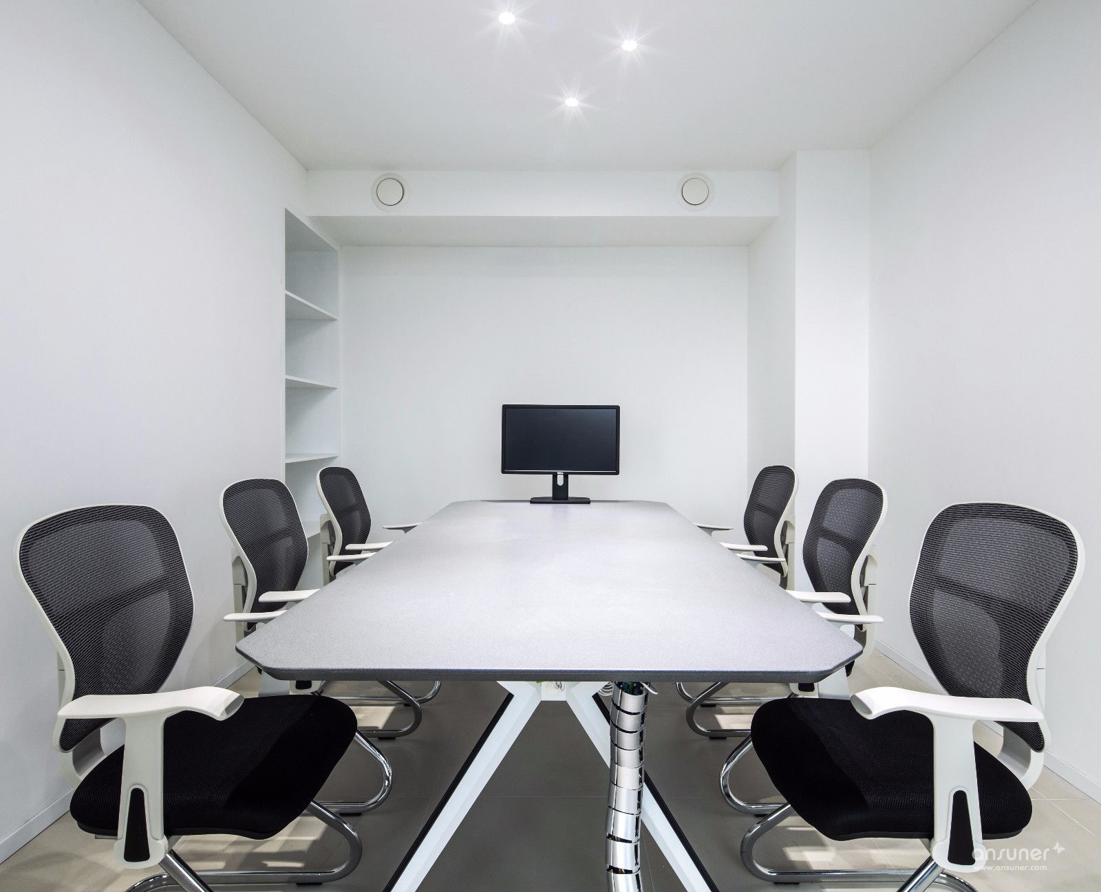 步入公司大门整个前台区以一种不规则的形态呈现在你的眼前,远角处经由一个廊口连接一层办公区域,设计师的故意为之让办公区不但具备很好的私密性,同时也保证了整个办公区不受外界干扰。沿着墙面蜿蜒的线条走进去,瞬间感觉豁然开朗,访客则会产生“别有洞天”的感受。楼梯间与公司唯一的8人员工区一起被放置在靠近窗户一侧,设计师还刻意保留了隔层的原始结构,以拉升空间高度,使公共办公区域得到有效增容,这样一来无论是在办公室里面还是员工区,都能轻松一览窗外美景。另外设计保留所有主体立柱以清水混凝土的外表体现,一丝工业风也油然而生。