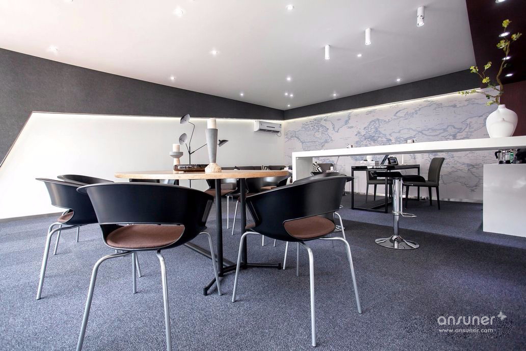 一个属于年轻人创业的工作环境应该具有时尚的气氛,以黑白灰的主色调,充足的阳光,极简洁的风格和活泼的氛围。